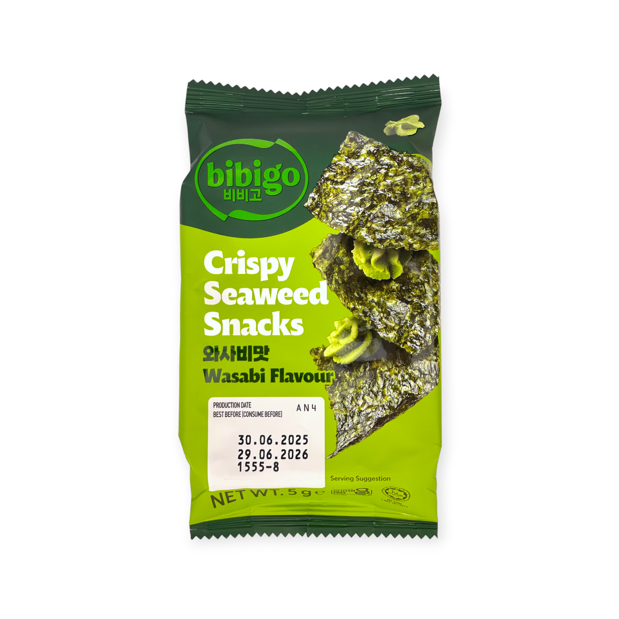 Crispy Seaweed Snack Wasabi Flavour - przekąska z prażonych glonów o smaku wasabi 5 g | Bibigo