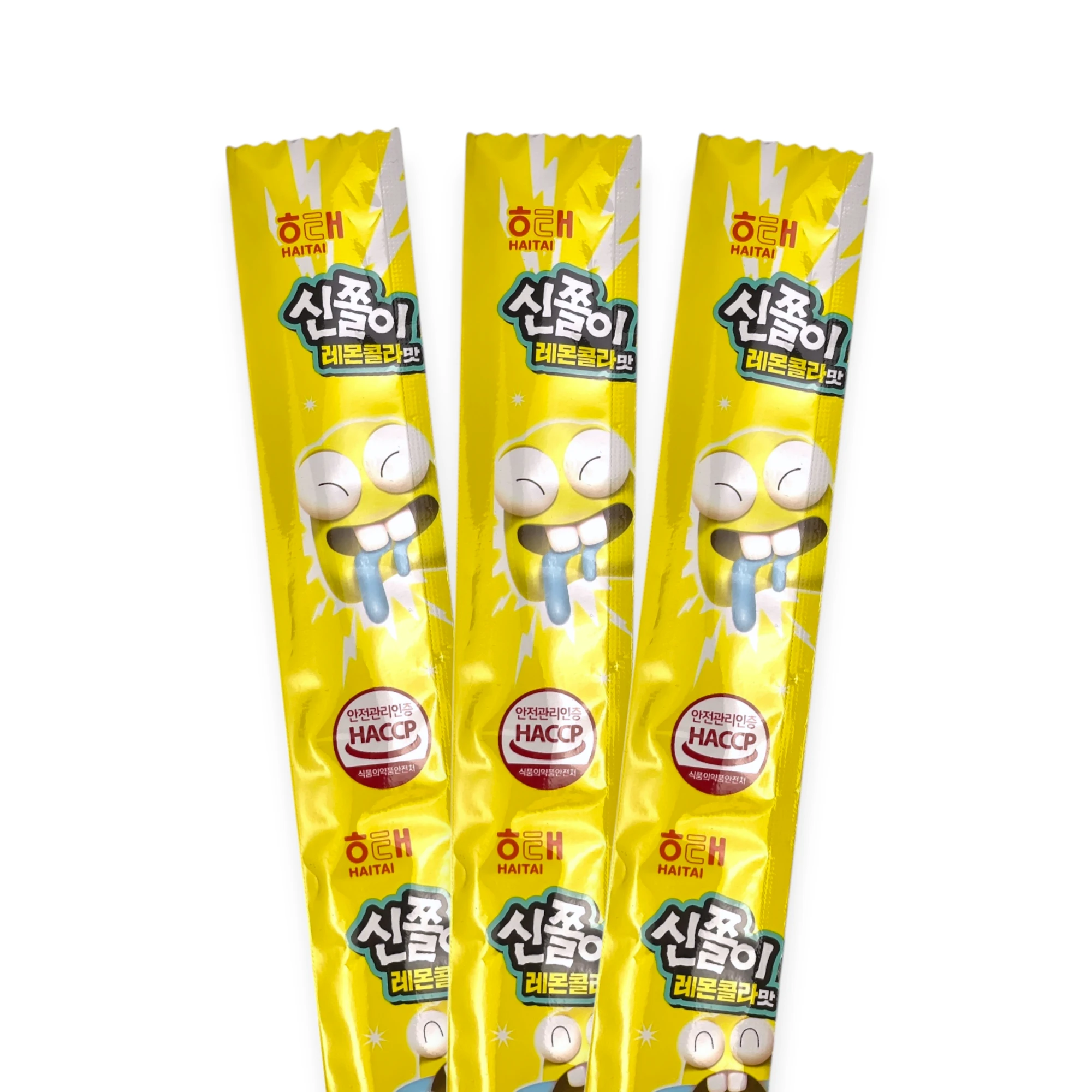 Haitai Long Sour Jelly Candy to koreańskie żelki w formie długiej, miękkiej taśmy – idealne dla fanów naprawdę kwaśnych słodyczy. Wersja o smaku cytrynowej coli łączy słodkie, żelkowe wnętrze z intensywnie kwaśną cukrową posypką z jednej strony, która dosłownie wykręca twarz. To właśnie ten kontrast między lekko musującą cytrusową-colą a szokująco kwaśnym cukrem sprawia, że trudno się oderwać.