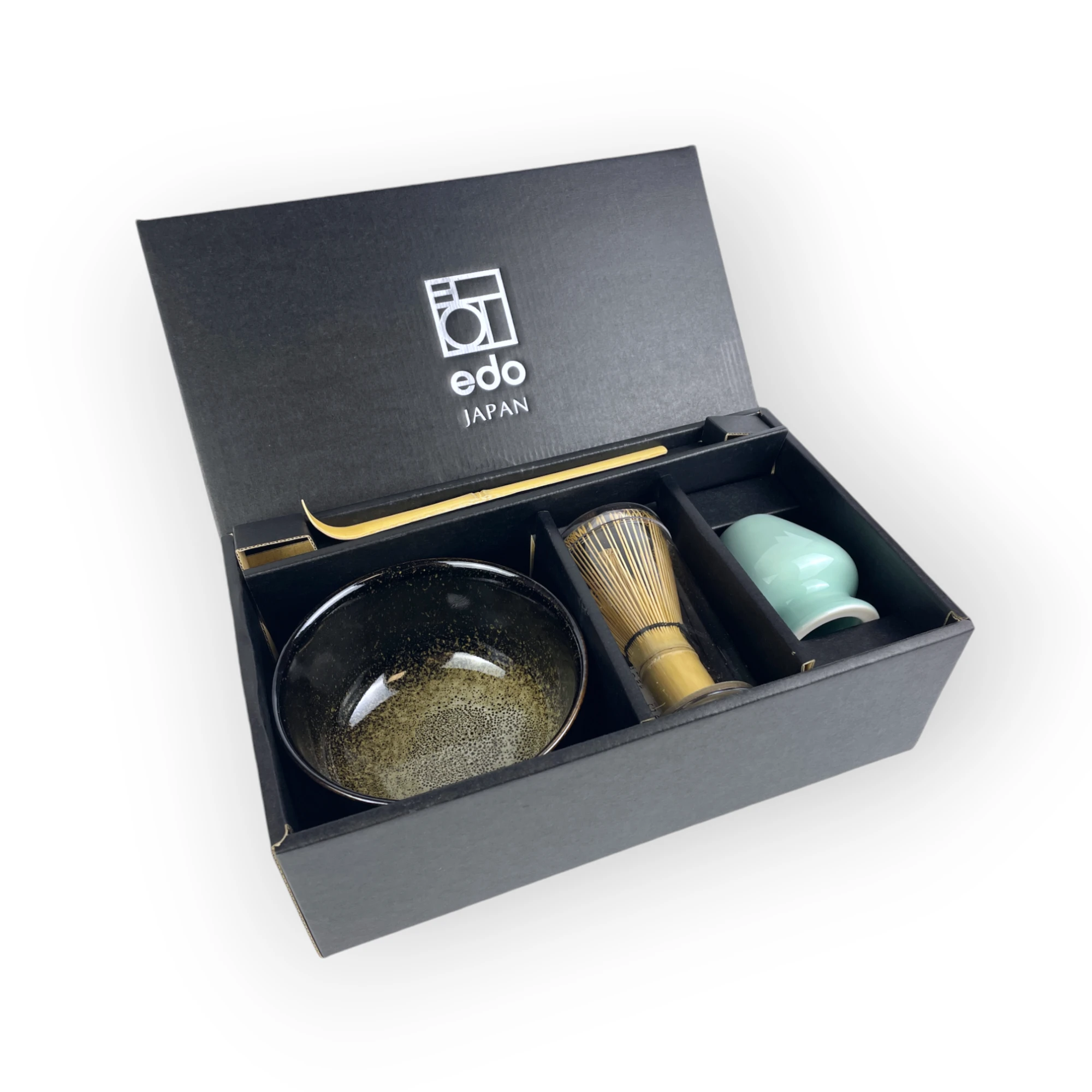 - Chashaku – bambusowa łyżeczka do matchy (dł. 18 cm) – Tradycyjna łyżeczka umożliwiająca precyzyjne odmierzanie idealnej porcji matchy.